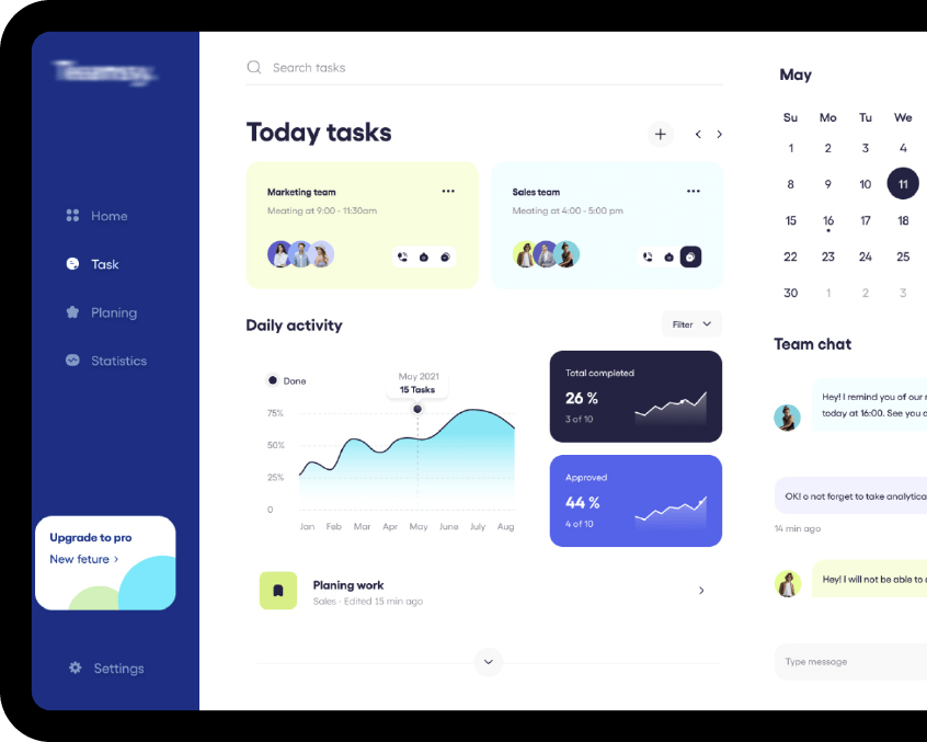 Different layouts and styles for team sections.